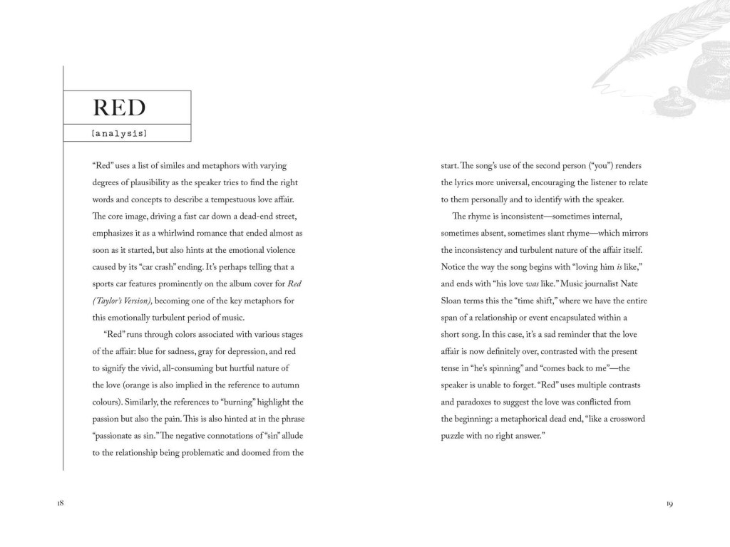 It’s a collection of 46 songs – from Debut to TTPD – with annotated lyrics and accompanying literary analysis, taking a super deep dive into the poetic and literary devices in Taylor’s work. I’ll explore how she uses everything from simile and metaphor to anacoluthon and polyptoton (don’t worry, there’s a glossary!) to create the haunting and relatable music we all love so much. If you’ve ever wondered what makes Taylor Swift such a popular poet, here are your answers! Or if you’d love a special gift for the Swiftie and/or reader in your life, look no further!